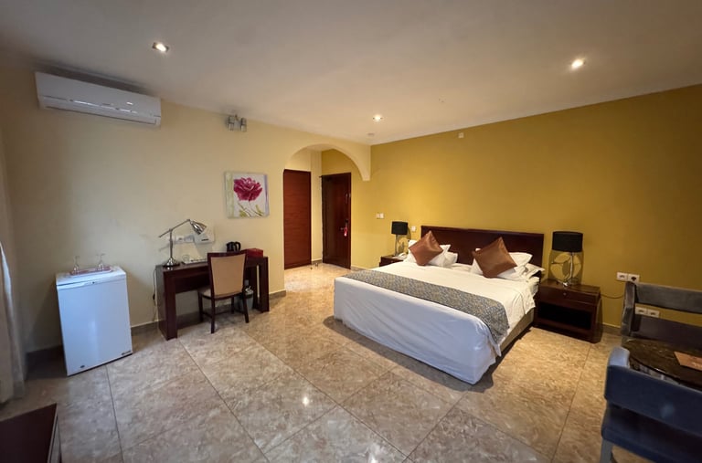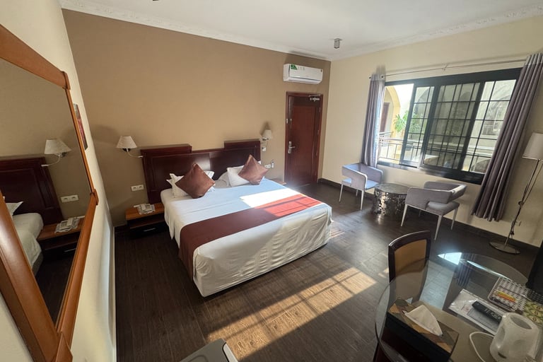 Enjoy a comfortable stay in our Standard Room, featuring essential amenities and a cozy atmosphere, perfect for a relaxing getaway in the heart of Cotonou.